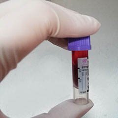 Nombre SANGRE CON ANTICOAGULANTE EDTA PARA AMONIACO Especificaciones PRUEBA EXCLUSIVA BAJO CITA DE LUNES A SÁBADO. Llamar a MAULAB para concertar una cita, ya que el mensajero debe de encontrarse en el lugar cuando se tome la muestra, porque el amoniaco es altamente volátil y la muestra debe de centrifugarse y separar el plasma de los eritrocitos en máximo 30 minutos. Enviar un microtubo con EDTA lleno. La muestra debe de tomarse rápidamente para evitar la formación de coágulos dentro de la jeringa y vaciarse suavemente en el tubo, mezclar enérgica e inmediatamente para que la sangre y anticoagulante se integren perfectamente, deteniendo el proceso de coagulación. Debe de rotularse con el nombre del paciente con marcador indeleble y poner en agua con hielo inmediatamente para detener el metabolismo celular. Tiempo máximo entre toma de muestra y separación y procesamiento del plasma: 30 minutos.